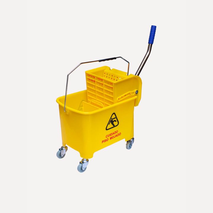 La cubeta exprimidora OVAL es la solución profesional para limpieza continua: versión 20 L con separador de agua limpia/sucia para mayor higiene y versión 32 L de uso rudo para máxima productividad. Llantas de hule gris que no marcan, señalización de Piso Mojado y exprimidor universal resistente. Elige tu capacidad y compra de forma segura en Mercado Libre.